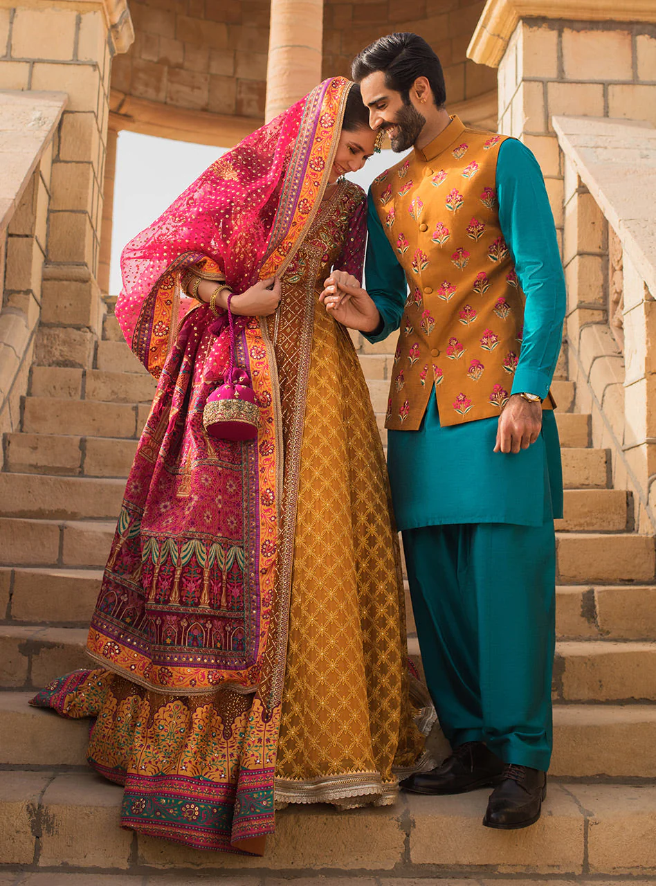This chrome waistcoat is decorated with colorful embroidered motifs.