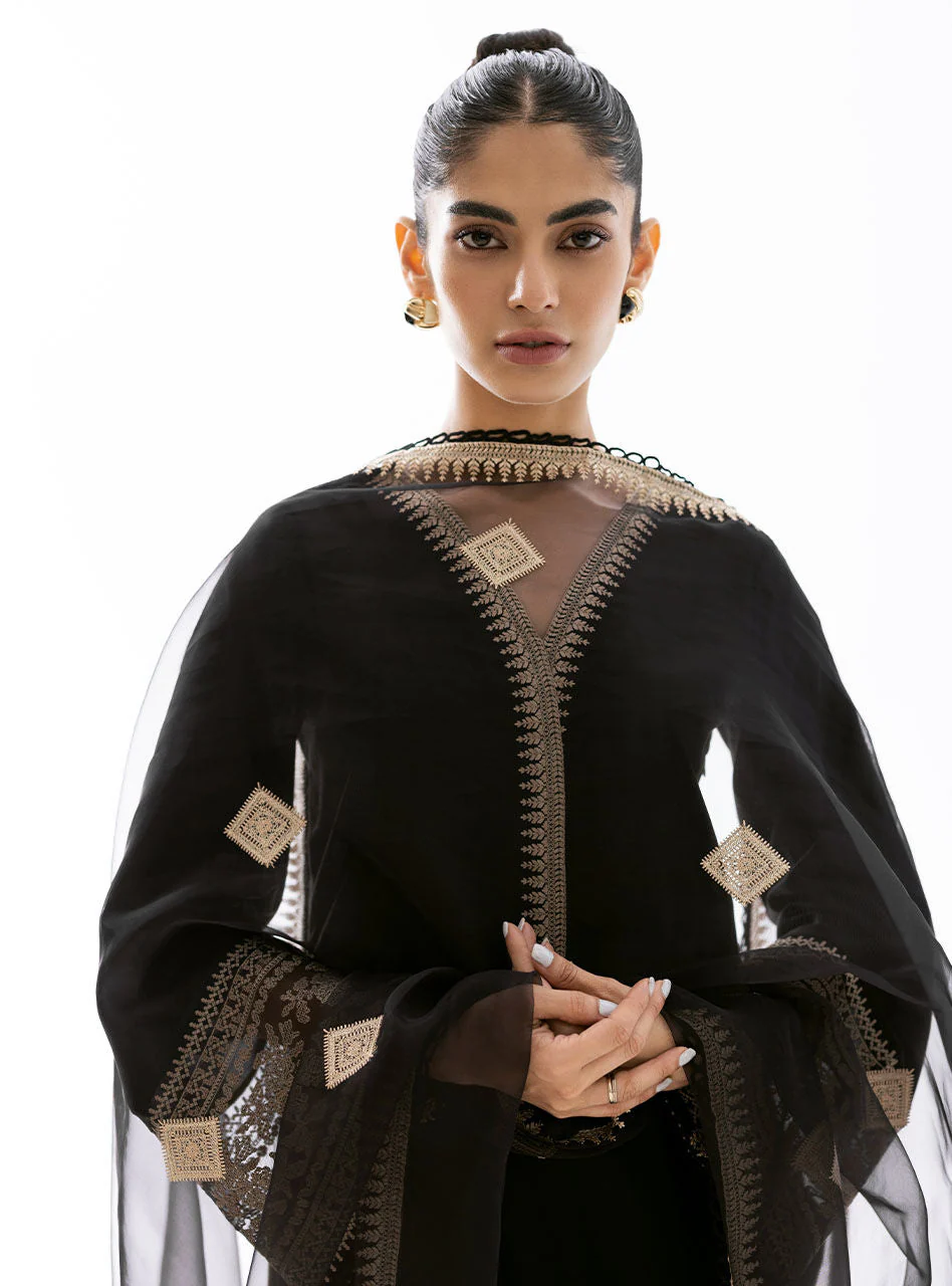 Minimal yet Exquisite! This ensemble is accentuated with delicate beige embroideries on sleeves and dupatta. It is paired with matching pants to complete the look of this ensemble.