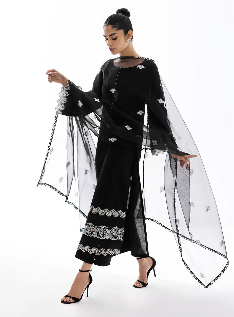 Amp up your look in this airy and cool silhouette. Delicate embroidered border on sleeves and daman, is further accentuated with beautiful dupatta adorned with light floral motifs all over, finishing the look of this ensemble.