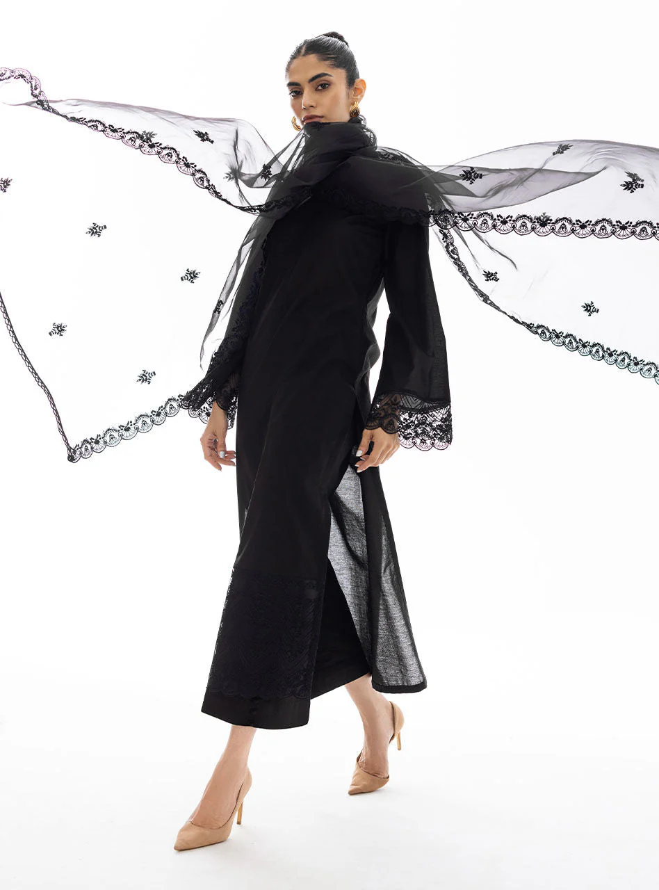 The monochromatic canvas features an elegant yet sophisticated ensemble. Hints of embroideries on shirt and dupatta amps up the femininity of this look.